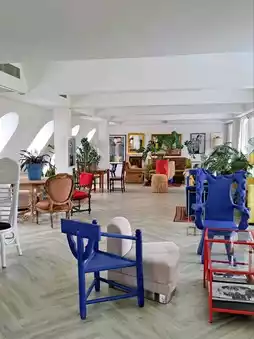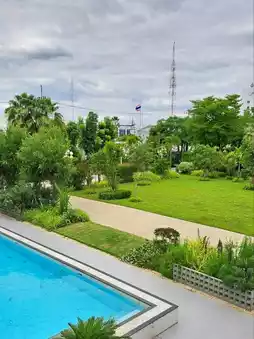 🌸 The atmosphere around the cafe is amazing, with a lush garden for a relaxing stroll, a riverside swimming pool, and a beautiful art gallery decorated in a minimalist style that's perfect for taking photos from any angle. 📸✨