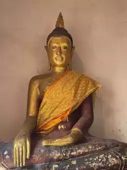 The floating moonstone is enshrined in the pavilion in front of Prasat Nakhon Luang. Ayutthayans believe it is sacred and grants success in all their wishes. It has a fascinating supernatural history, with its ancient shape: a round stone, as if drawn and cut by a compass by skilled craftsmen. It is adorned with gold leaf, which villagers venerated with reverence, giving it a dazzling yellow hue. The radiance miraculously glows when exposed to light, reminiscent of the full moon.