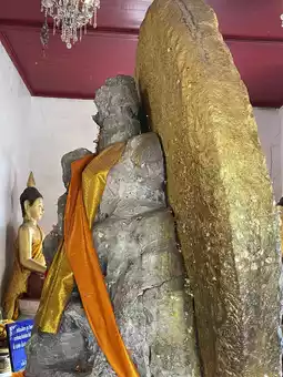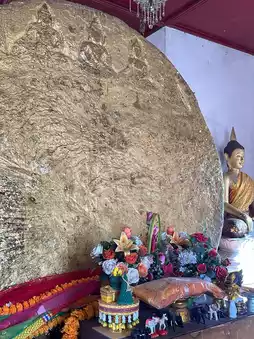 Folklore also tells of the legend of the floating moonstone, which is said to have floated down the Pa Sak River. The local community was astonished and tied a rope to the pavilion of the community temple to prevent it from floating away. Miraculously, the rock had such a powerful propulsive force that it pulled the pavilion along with it, thus earning the name "Wat Sala Loi." When the rock floated to another community, the villagers, noticing the strange sight, tied the rock to a Bodhi tree at another temple. However, due to the rock's propulsive force, the Bodhi tree itself fell. The temple was thus named "Wat Pho En," and the rock was dislodged, eventually coming to rest in front of Wat Prasat in Nakhon Luang District, Phra Nakhon Si Ayutthaya Province. A highly skilled sorcerer chanted a mantra and, using only three strands of sacred thread, was able to lift it from the water.