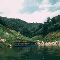 The second spot is "Khao Chong Lom," a key highlight of the boat tour at Khun Dan Dam. This area offers picturesque views for photography, including grasslands, forests, streams, and rocky terrains. The large rock in the middle of the water is particularly popular among tourists. Walking about 1 kilometer into the forest, you’ll discover "Khao Chong Lom Waterfall," a refreshing cascade nestled amidst the lush forest.