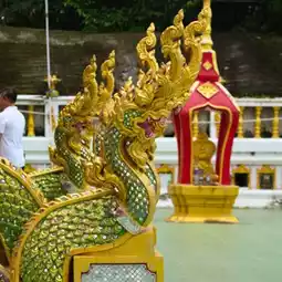 🌹Wat Mani Wong, Nakhon Nayok Province is a temple with outstanding beauty and uniqueness, especially the Naga Cave, which is intricately decorated with Naga sculptures and many deities. Inside the cave, there are Buddha statues and sacred objects for worship and blessings. In addition, there are other beautiful architectures to see in the temple, including a large statue of Thao Wessuwan, making Wat Mani Wong another destination not to be missed for those who want to worship and admire the exquisite artwork.