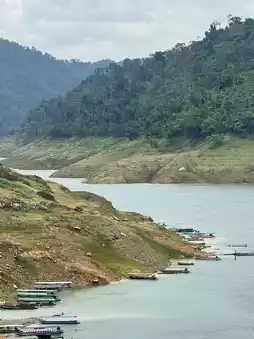 As for the travel method, it's very easy. Just travel to Khun Dan Prakan Chon Dam and contact the officer. This time, we chartered a boat with 5 friends, each person got 3 red cards. Then go down to the boat below. Let me tell you that there are many steps. My legs were shaking when I went down. Going down was not so bad, but going up was almost deadly tired. When we arrived at Khao Chong Lom, the atmosphere was sooooo beautiful. It healed our hearts the best. The sound of the natural waterfall. If you soak your feet in cold water, I tell you, it's awesome. We asked the boat driver to take a picture for us. He took very beautiful pictures. Then he took us to another place. But we were in a hurry to go back so we didn't stop.