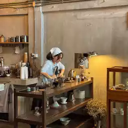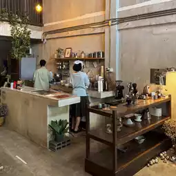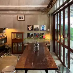 This cafe boasts a beautifully harmonious loft-minimalist design. Located in Ongkharak District, Nakhon Nayok Province, just a short distance from Bangkok, the atmosphere is warm and peaceful, perfect for working or reading. They also offer coffee and non-coffee drinks, as well as pastries. 😍😍