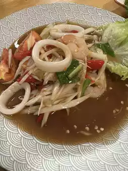 Everyone's been to Nakhon Nayok, right? Looking for a delicious restaurant? I'd like to recommend Thong Naem Nuang. I stumbled upon this restaurant and had the chance to try it out. It was incredibly delicious! The food was reasonably priced. We ate a lot, and it only cost 1,200 baht, filling up the table. My favorite dish is the papaya salad with rice vermicelli. It was so delicious, it was exactly what I was looking for. I ordered three more! The fish sauce was just right, and it didn't smell bad. The other dishes were also delicious. Another dish I ordered to take home was the Naem Nuang Roll. You don't have to wrap it yourself; they'll wrap it for you, so convenient! The restaurant is located near the Khun Dan Prakan Chon Dam. If you're in Nakhon Nayok, don't forget to stop by! 💗