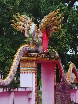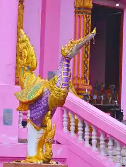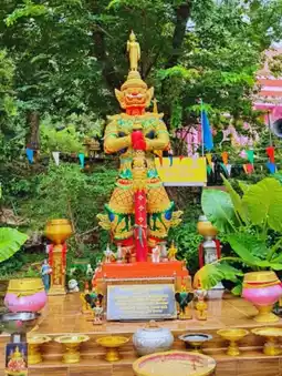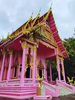 💯Wat Khao Thurian, also known as Wat Si Chomphu, is an ancient temple in Nakhon Nayok Province that stands out and stands out from the crowd. The temple's almost entirely decorated in bright pink, including the main chapel, viharn, pavilion, and the large Naga staircase that extends up the hill. These beautiful and unique creations have become a unique attraction, attracting visitors and visitors alike for photo opportunities. Inside the main chapel, a Buddha image resembling the Phra Buddha Chinnarat is enshrined, allowing Buddhists to pay their respects and pray for good fortune. There's also a statue of Thao Wessuwan, a revered deity, for worship. The temple's hillside location offers a tranquil and shady atmosphere.