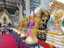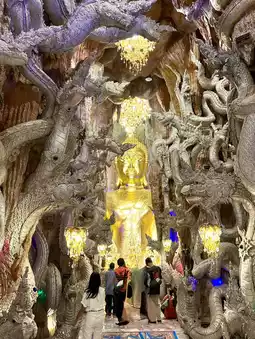 Wat Mani Wong, Nakhon Nayok Province ✨ A renowned temple distinguished by its magnificent "Naga Cave" and "Mani Lok Mountain." The interior is adorned with exquisite and intricate art, filled with shimmering golden lights and lifelike Naga patterns. The atmosphere is both sacred and mysterious. Visitors flock here to pay homage to "Luang Por Phra Maha Heng" and to pray for blessings in fortune, career, and success. Outside, there is a grand Naga courtyard perfect for taking stunning photos, as if stepping into a fantastical world. This temple combines beauty, faith, and sanctity all in one place. 💚🐍