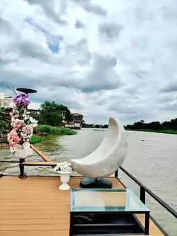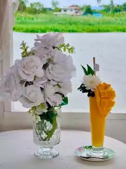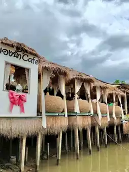 If you're looking for a relaxing place to fill your day with a relaxing spirit, "Mong Nam Cafe" is the answer. 💚 This restaurant and cafe boasts a beautiful atmosphere, located along the Nakhon Chai Si River, surrounded by lush greenery. It's sure to invigorate you from the moment you step inside. 🛥️