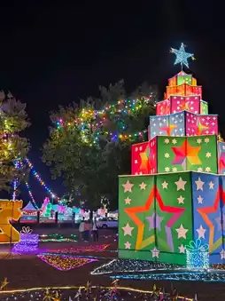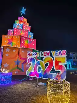 In the middle of the lawn, there will be a large pile of gifts along with the numbers 2025 Happy New Year. Free admission, no charge. Parking is available on both sides of the road.