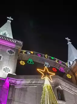 It is a church located on the banks of the Mekong River. It is in the same area as St. Joseph Nakhon Phanom School, which used to be called Santyanan School. But before that, I remember that it taught from kindergarten to junior high school. During Christmas, there are decorations and lights in front of the church and various points in the temple. There is also a Christmas star parade tradition that will be held on December 25. If anyone misses the actual parade day, there will be a parade float parked in front of the church for tourists to enjoy. The decorations in front of the church will be until mid-January. Nong Saeng St. Anne Cathedral In the evening, the weather is cool to cold. It is recommended to wear a sweater. Taking pictures is very beautiful, especially at night when there are not many people. The highlight here is the lights hanging from the large trees. Taking portrait photos is great.