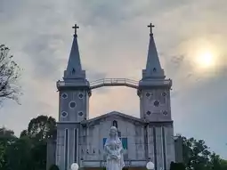 #Get a discount without relying on luck. The Cathedral of St. Anne, Nong Saeng is the oldest Christian church in Nakhon Phanom Province. It is beautiful with its arched arch decorations. The upper part is a spire tower. It is open to visitors only during mass. Monday - Friday at 6:15 a.m., Sunday 6:15 a.m. and 7:00 p.m. On the right side of the church is a newly renovated bell tower. On the left side of the church is another equally old building with various statues. Next to it is the monks' quarters. Behind it are the restrooms. The most beautiful time is before sunset. The sun will be behind the church. It is very beautiful.