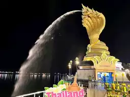 #Let'sTalkAboutTravel Take a tour and pay homage to the sacred landmark of the Mekong River at the Phaya Sri Sattanakarat landmark in Nakhon Phanom Province. It's a must-visit for those who are into religious merit-making and superstition. If you don't go, it's like you haven't been to Nakhon Phanom. The Naga statue, the Naga King of the Mekong River, or Phaya Sri Sattanakarat, is a large bronze Naga statue with seven heads, standing majestically on the banks of the Mekong River at the Phanom Naga plaza. The graceful and beautiful Naga statue was built to bring good fortune to the people of Nakhon Phanom and is highly revered by Buddhists who believe in Naga. Coming here to pay homage and ask for blessings from the Naga, believed to bestow good fortune, prosperity in business, and success, you can also enjoy the million-dollar view of the Mekong River. In addition to coming to pay homage and make merit, this place is also one of the most beautiful viewpoints along the Mekong River in Nakhon Phanom. The atmosphere is especially beautiful in the evening, with a clear view of the sunset over the Mekong River. The surrounding area has a wide plaza for walking and relaxing. A visit to the Phaya Sri Sattanakarat landmark is a complete experience. Both in terms of faith and natural beauty, if you're visiting Nakhon Phanom and looking for a peaceful and impressive place, don't forget to stop by here. I guarantee you'll love it. Have you visited this place before? Share your experiences and let's chat.