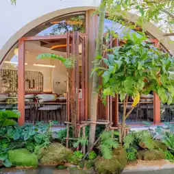 🏡 Semi-Outdoor Terrace zone, where you can open the windows to enjoy the breeze and view the serene waterfall garden. Another highlight is the open-kitchen style grilled patongko booth inspired by the shape of bamboo baskets.