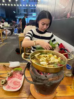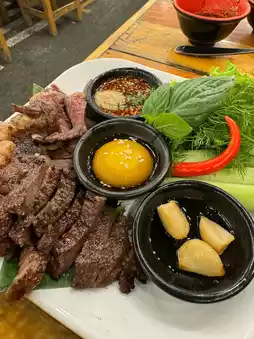 Jim Jum with aromatic herbal soup, extremely flavorful. The dipping sauce is equally delicious. Here, they have Australian beef, pork, and seafood. Order whatever you like. There are plenty of snacks to choose from! There are many to choose from, such as Crying Tiger, Grilled Pork Neck, Fermented Pork, Shrimp in Fish Sauce, Salmon Salad, Fresh Shrimp and Strawberry Salad, Fried Small Intestine with Garlic, Salmon Larb, Fried Pork Belly with Chili and Salt. Everything looks delicious. Just looking at it makes my mouth water. In this cold weather, what could be more suitable than sitting and eating spicy Jim Jum? Hurry up and invite your friends to eat together!