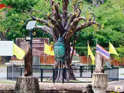 🌿The Dharma Tree is a contemporary artwork created from the stump of a dead Bodhi tree standing next to the temple’s old ordination hall. This work is a mixed media that combines art and Dharma to commemorate the Lord Buddha and to serve as a medium for spreading Dharma.