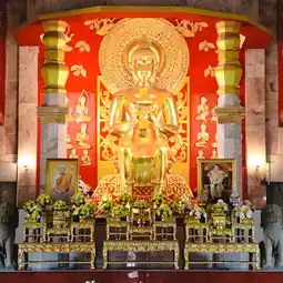 The ordination hall is shaped like a junk, made of marble, towering and majestic. When you enter the ordination hall, you will see the intricate lacquerwork on the clear glass.