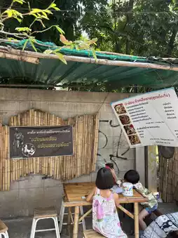 A restaurant by the fence that waited for food for a long time because there was a long queue. With a unique taste of food, strong and spicy. You can choose the level of spiciness as you like, starting from kindergarten, which we chose primary school, which was considered medium spicy. I'm not a person who can eat spicy much. And if you have children with you, you can order without chili at all. The children ate it very deliciously. Another menu that I like is the pork sausage salad. I've come back and still haven't found it anywhere. I think I have to organize a trip to Korat again. If anyone is traveling to Korat, after paying respects to Ya Mo and looking for something to eat, I recommend this restaurant. It takes a long time, but it's delicious. The restaurant is not far from the Thao Suranaree (Ya Mo) Monument. The shop opens every day from 11:00-17:00. Open the map to search: Pa Om, Korat Noodles #KoratNoodles #TravelKorat #WhatToEatKorat