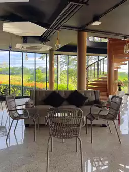 Sugavia Cafe is a super chill cafe in Khao Yai, perfect for both coffee lovers and nature lovers. Decorated in warm, modern tones, it feels like sipping coffee at a friend's house, but with a pleasant view of the surrounding mountains and trees. The menu offers a wide variety of beverages, including rich, aromatic coffee, delicate matcha green tea, and refreshing fruit juices. The homemade desserts are also worth a try, especially the soft cakes that go perfectly with the coffee. There are plenty of photo spots, both inside and outside, with clear views of Khao Yai. It's a great place to chill, work, or unwind on a relaxing day. The place is not too busy, and it offers a wonderful sense of privacy.