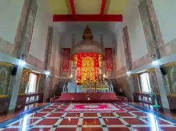 🎈Wat Phayap, Royal Monastery. This temple was founded in 1657. It's unknown who built it. Upon completion of the city of Nakhon Ratchasima, King Narai the Great ordered the restoration of six temples within the city walls: Wat Phra Narai Maharat, Wat Burap, Wat Bueng, Wat Phayap, Wat Isan, and Wat Sa Kaeo. The ordination hall at Wat Phayap is a late Ayutthaya-style chapel shaped like a junk boat and made of marble. Inside, the principal Buddha image, depicting the Buddha giving his first sermon with his feet hanging down, is enshrined. Wat Phayap was established as a royal temple on June 29, 2008.