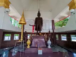 Come pay homage to the principal Buddha image in the posture of delivering the first sermon, with his feet hanging down.
