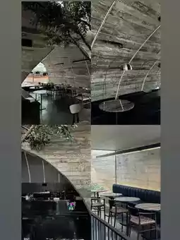 when we were about to cut a croissant. The inspiration that led to the design of this cafe was inspired by observation and experimentation. This example is French Kitsch Cafe, a cool concrete cafe