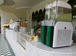 A spacious minimalist-style cafe in Hua Thale Subdistrict, Mueang District, Nakhon Si Thammarat. Their coffee is simple, but if you order it less sweet, it's not sweet at all. They have a selection of coffee beans, milk alternatives, and delicious desserts. There are plenty of photo spots. The cafe has a spectacular waterfall garden. The food is diverse and flavorful, and the decorations are beautiful and appetizing.