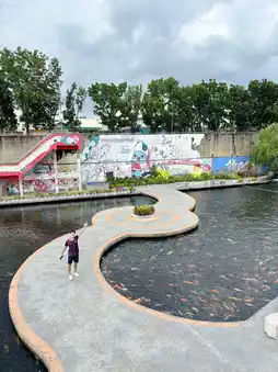 The walls are beautifully painted, and fish food is sold on top. When you buy fish, they lower a rope for you to buy. The kids loved it! You can come here any time, but evenings are best. The weather is pleasant and not too hot. There are also a number of vendors around. This is a must-see when visiting Nakhon Sawan. #NakhonSawanAttractions #NakhonSawanTravel #KhlongYuanChuanRak