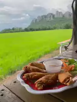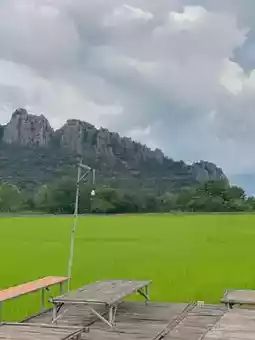 Come to a cafe in the middle of a rice field with a view of Khao No in Nakhon Sawan Province. Those visiting during this time will be treated to breathtaking views of the lush green rice fields.