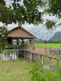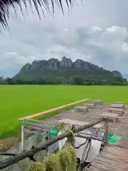 Between the Mountains Cafe is a small hut-like cafe nestled in the middle of a rice field, nestled between Khao No and offering views on both sides of Khao No.