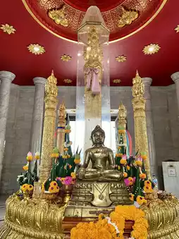 The iconic temple of Nakhon Si Thammarat featuring a bell-shaped stupa that enshrines a sacred relic of the Buddha.