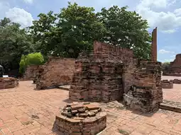 The temple is renowned for its striking "Buddha Head in Tree Roots"—a Buddha head that has been gently embraced by the roots of a fig tree over centuries, creating a unique blend of nature and religious heritage. This iconic image has become a symbol of Ayutthaya. The temple complex features a mix of Khmer-style prangs and Sri Lankan-style bell-shaped stupas. Although much of it was left in ruins after the Burmese invasion in 1767, the remaining brick towers, Buddha statues, and layout still reflect its former grandeur.