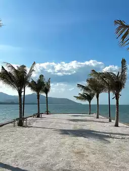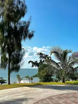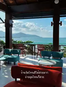 The view is truly dreamy. It's a newly opened cafe, very quiet and private. Perfect for reading a book or sipping coffee by the sea, with a panoramic ocean view. The cool breeze blows without making you feel sticky.
