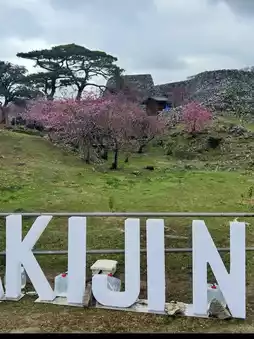 In spring, the cherry blossoms bloom in full bloom, making it a popular spot to enjoy early cherry blossom viewing in Okinawa. 🌸