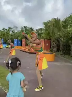 ✅ On the way to meet Splash Battle water gun crazy dance show, we just played Safari already wet body, sister can continue to play crazy water atmosphere high😂 clothes all wet ~