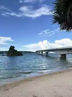 Kouri Bridge and Cape Manzamo are famous scenic spots in northern Okinawa. Their azure sky and gradated pale blue ocean create a scene of beautiful, shimmering waves. Tropical climates create vibrant clouds. The maritime climate often brings timely downpours, adding a ray of dawn light to the clouds. The waves blaze with brilliance, reflecting a beautiful rainbow. #KouriBridge #KouriTower #ManzaMo #Okinawa