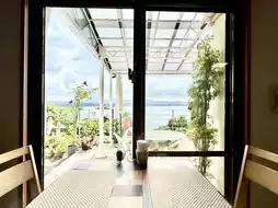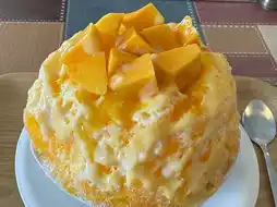 Cafe t & c Toraku is located in Kouri and pairs perfectly with shrimp rice. The cafe offers stunning views, a cozy dining environment, and my favorite treats like mango condensed milk ice and matcha red bean pancakes. On a hot day, enjoying a refreshing bowl of ice desserts here feels truly blissful.