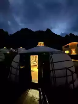 🏕️ For dinner, eat local food at the ger camp and watch the stars ✨