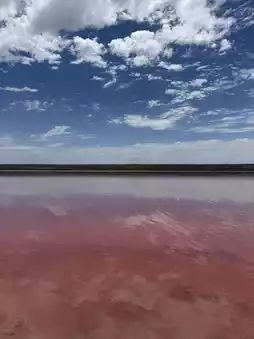 The pink lake is famous, and from the air, it looks like a pink painting, beautiful as a poem.