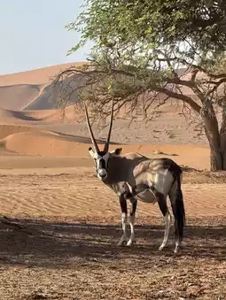 It's a desert full of beautiful sand dunes that you only see in paintings... and the red sand color is really beautiful. If you drive by, you can meet Namibia's signature animal🤣 Oryx!!