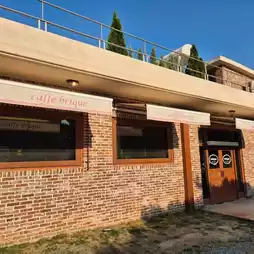 Brique is a cafe with a large garden. There are a lot of outdoor tables in the garden.