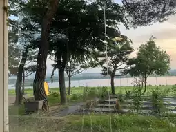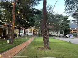 Located right next to the river, the gentle sound of water carried by the breeze created a serene ambiance. Parasols under pine trees blended harmoniously with nature, while warm, atmospheric lighting added a cozy touch. Seasonal plants made the outdoor space feel much fresher compared to indoor settings.