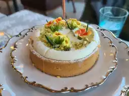 There are two kinds of BLT and fig base, and the taste is better than expected, so it is delicious. Sweets include two kinds of scones, canelés, cream baumkuchen, and macarons, set for one person on the lower plate.
