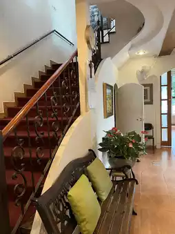 The elegant stone path leading from the entrance and the meticulously maintained trees resembled a picturesque garden painting. Seasonal flowers blooming here and there added vibrant colors, making the view even more stunning. ๐ฆ