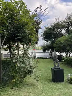 The garden in front of the restaurant was filled with well-maintained trees and flowers, creating a charming and serene atmosphere. Walking slowly along the garden path, I could smell the subtle fragrance of grass, and beyond the garden, the Bukhan River flowed gently, blending harmoniously with the lush mountains to create a picturesque scene. ๐
