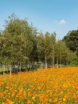 During the day, the vibrant orange hues of the cosmos flowers are stunning, and as the sun sets, the sky turns a deep red, making the flower fields even more radiant! The best time for photos is undoubtedly during the golden sunset hours in the evening🧡