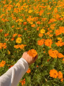 Right now, the flowers are at their peak, with vibrant orange cosmos in full bloom creating a breathtaking view. If you visit this weekend, you'll catch them at their most beautiful 🙌
