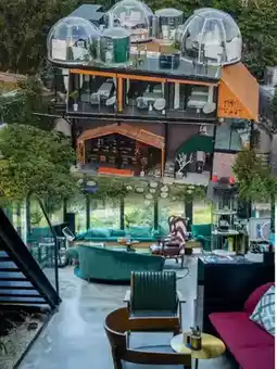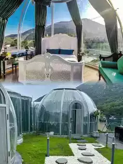 There are a variety of room types to choose from, among which the bubble house and the room with an electric starry sky skylight and a super large bathtub on the roof are the most popular. The interior of the room is exquisitely decorated, with advanced Morandi green and panoramic terrace, soft and comfortable bedding, complete smart home equipment, and customized luxury bath products, allowing you to enjoy a comfortable and convenient accommodation experience.