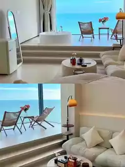 ✅Couples bathtub ✅First-line sea view ✅Giant projection screen