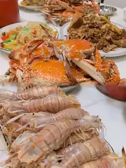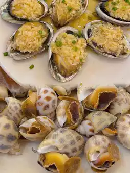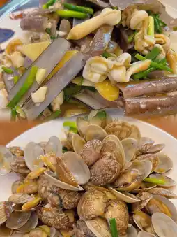 Seafood food stalls: Qing'ao Bay "Sister Xu's Dishes", Houzhai Town "Fengwei is very good", must-order boiled squid and spicy salt mantis shrimp.