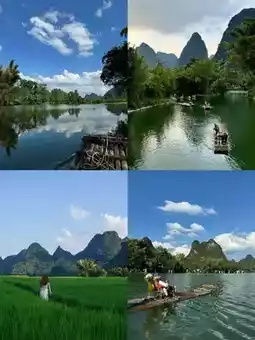 🚲 Must-do: Rent a small electric scooter and ride along the Yulong River, green mountains on both sides rolling by, the wind blowing your partner’s hair, so beautiful you want to freeze the moment! Take a bamboo raft drifting on the Li River, 20 yuan RMB background check-in, the atmosphere for kissing among the mountains and waters is perfect💋