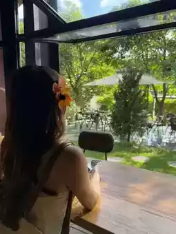 The balcony overlooks mountain views—just sitting there daydreaming is pure bliss.
